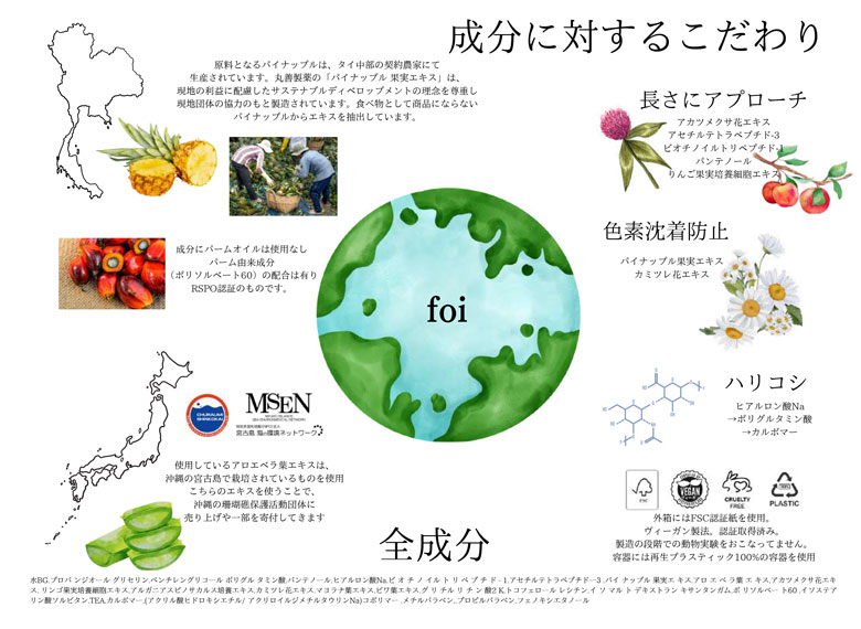 foiは日本初の再生プラスティック100%でできた容器を開発&使用。